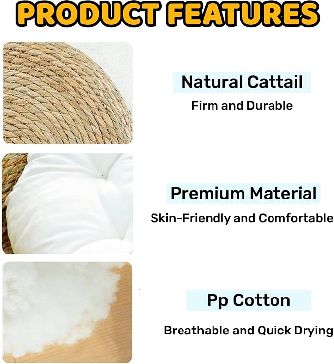- [SAFE & COZY] – Woven from Natural Cattail Leaves, No Chemical Added, Environmentally and Cat-Friendly, Giving Cats a Comfortable Napping Time, Healthy and Happy All Day Long