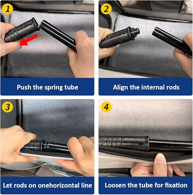 - SAFETY DESIGN- Each access has a zipper lock to prevent cats from escaping. On the side have seatbelt loops, can fix the carrier in the car. The internal metal support structure may also provide good protection for pets.