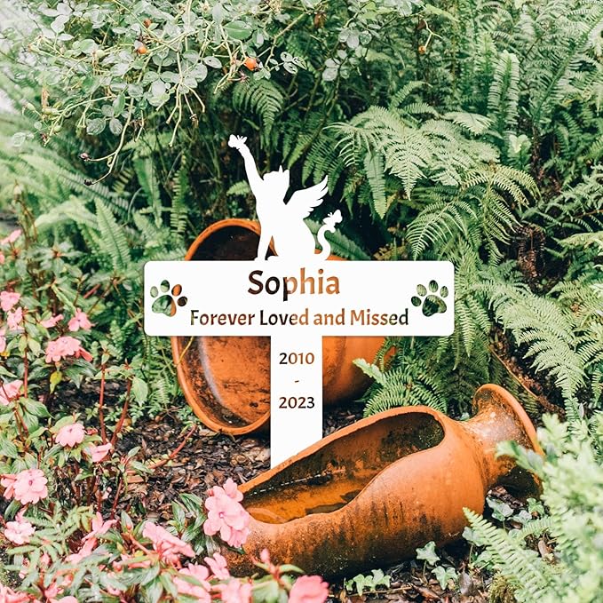 Personalized Cat Memorial Grave Marker Stake, Custom Pet Cat Memorial Stake Grave Marker for Outdoors Paws Cat Metal Plaque Sign with Stake, Cat Memorial Gift Garden Stake Sympathy Sign