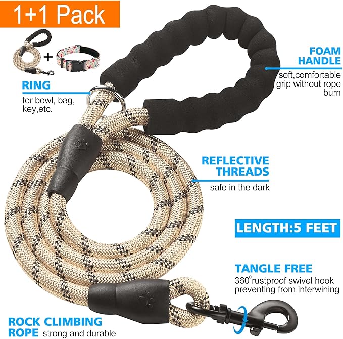 - BONUS DOG LEASH: A free 5ft dog leash is included. Featured with comfortable foam handle, strong climbing rope, and tangle-free hook
