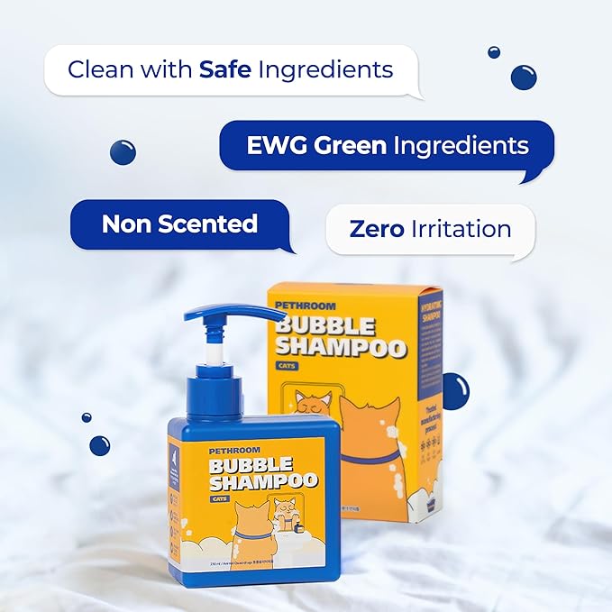 - HYPOALLERGENIC & GENTLE FORMULA: Dermatologist-tested, hypoallergenic, and crafted with naturally derived surfactants, this shampoo is perfect for cats with sensitive skin. It calms irritation, balances oil and water, reduces sebum buildup, and alleviates itching, shedding, and scratching, ensuring a soothing bathing experience.