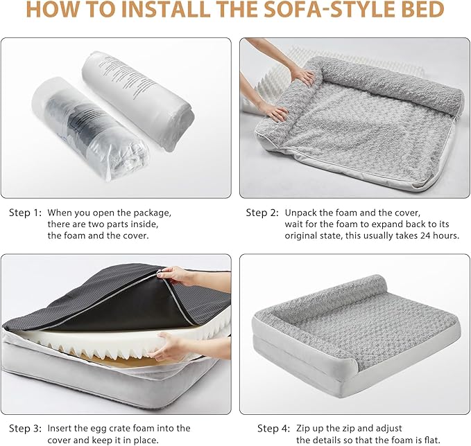 - EASY TO CLEAN&NON-SLIP: The sofa dog bed comes with a removable and washable dog pillow cover to ensure that the big dog bed can be easily cleaned. The washable dog bed has a durable zipper that allows for easy removal and reattachment. The non-slip rubber particles of the waterproof dog bed bottom hold it in place on the floor without sliding.