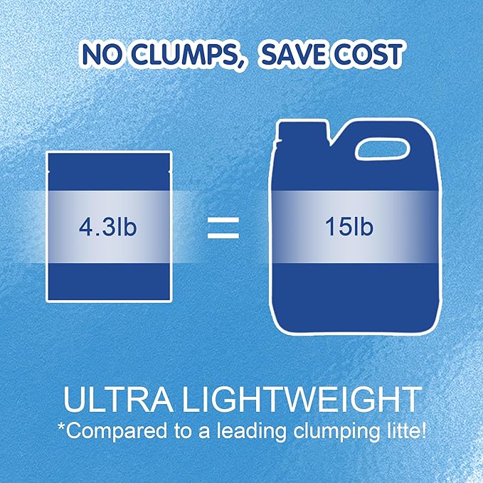 - Ultra Lightweight: 4.3lb per bag of Crystals is the same number of uses as a 15lb bag of clumping cat litter.