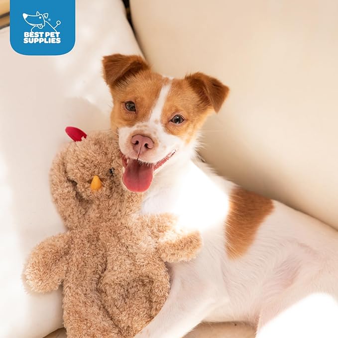 Best Pet Supplies Chicken Crinkle Plush Dog Toys for Interactive Play, Puppy and Senior Indoor Play, Colorful Chicken Toy Shape, Cute and Cuddly - Crinkle Chicken (Khaki)