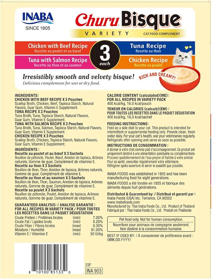 - RICH & CREAMY: Churu Bisque is a rich and creamy purée like our original Churu lickable cat treats, but with a thicker consistency that is perfect to serve as a side dish