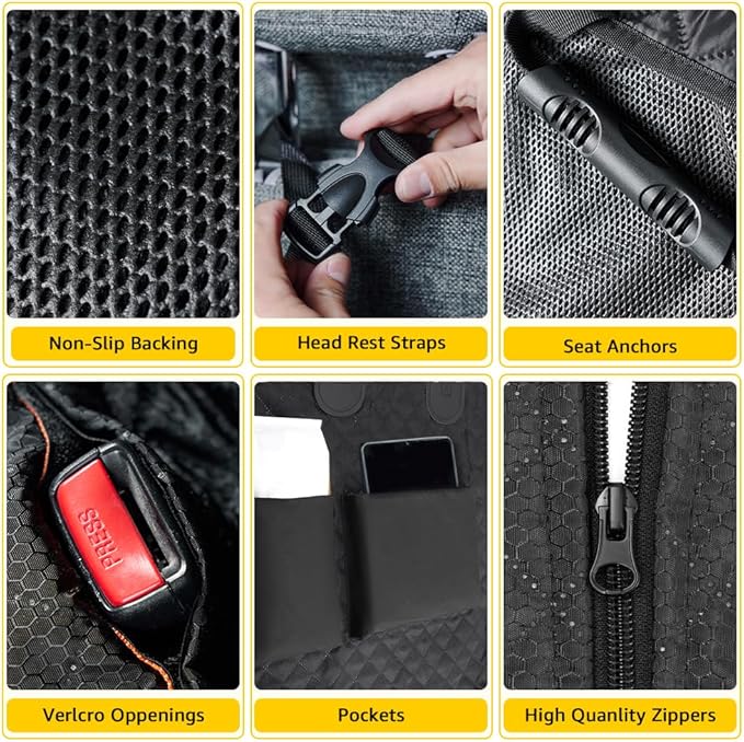 - πΎ[Enhanced Safety and Protection] : The seat cover is designed with non-slip backing, seat anchors, and side flaps for additional protection, ensuring a safe and secure environment for your pet.