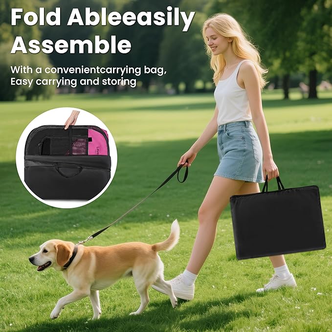 - No Assembly Required and Easy to Store: The Portable Pet Play Pen comes along with a convenient carrying case that can easily store your playpen. It takes seconds to open the dog playpen from folded storage bag, no assembly required. And it's also easy to fold back flat when not in use. Our lightweight portable pet playpen can be used indoors, outdoors, traveling, camping, etc.
