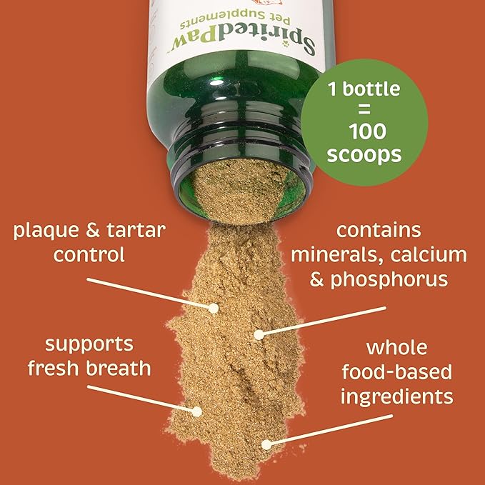 Dental for Cats & Dogs - Teeth Support Powder for Dogs & Cats - Pet Health Supplements with Calcium & Fresh Breath Support - Dental Care for Plaque & Tartar - 165 g