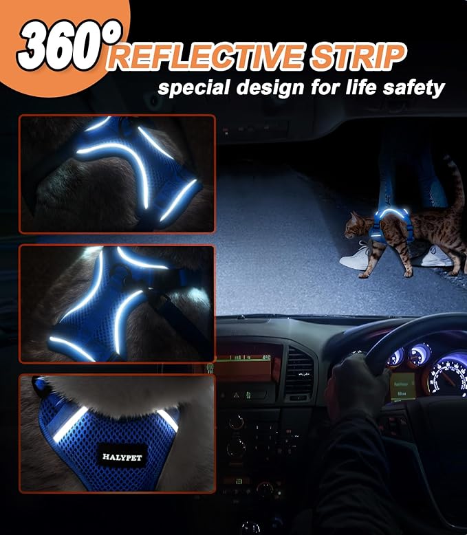 Halypet Cat Harness and Leash Set [ MAX Safety Third Generation ] Escape Proof Soft Adjustable Cat Leash Breathable Comfortable Vest Easy to Wear Kitten Harness for Outdoor Walking