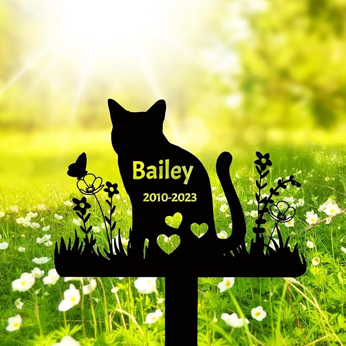 Custom Metal Cat Memorial Garden Stake Grave Marker, Personalized Flowers Cat Memorial Stake Grave Marker for Pet Grave Decor, Customized Cat Headstone Tombstone Outdoors Memorial Marker