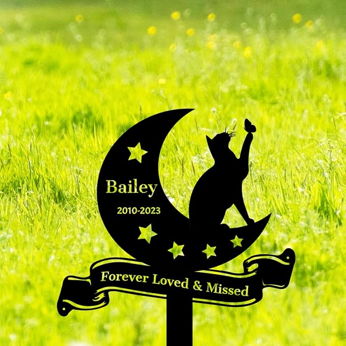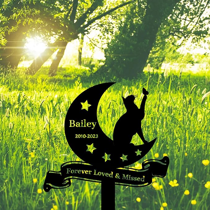 Custom Stars Moon Cat Grave Marker Outdoor, Personalized Metal Cat Memorial Stake Grave Marker, Customized Cat Memorial Statue for Outside Garden Plaque Pet Memorial Marker for Cats