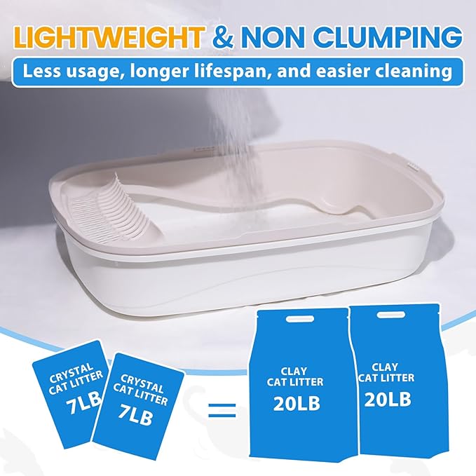 - Lightweight: Crystal cat litter is more lightweight, weighing only 1/5 of regular cat litter, making it easy to handle and store. Moreover, 7lb bag of Crystals is the same number of uses as a 20lb bag of clumping cat litter, which can save owners some costs
