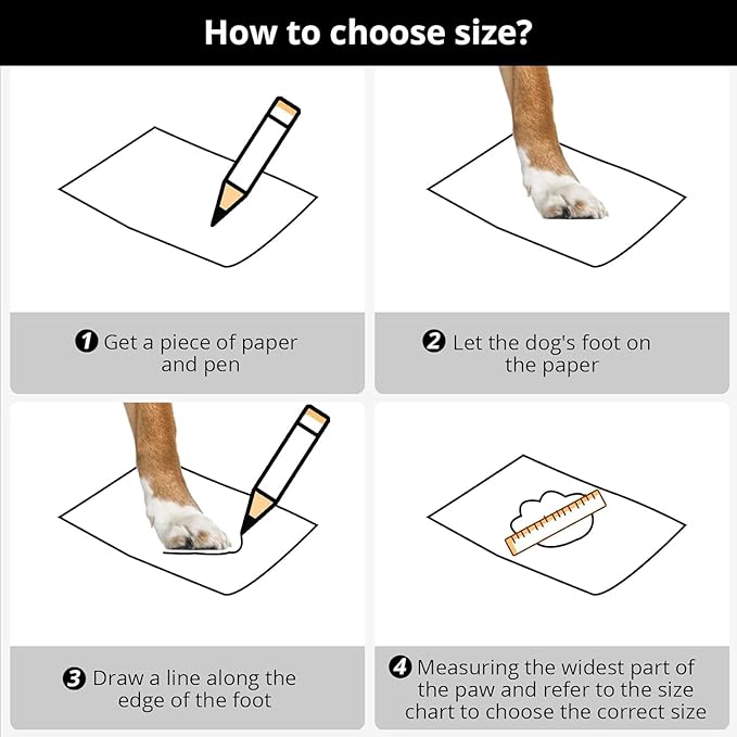 - 【Size 3】: 1.96''x2.36''(W*L).for 16-24(lbs).Great for all kinds of dogs.Place your pet's paws on paper; Mark the width of the paws, including the toes and nails,Except for the hair;Please refer to the picture size chart to choose the right size for your puppy.