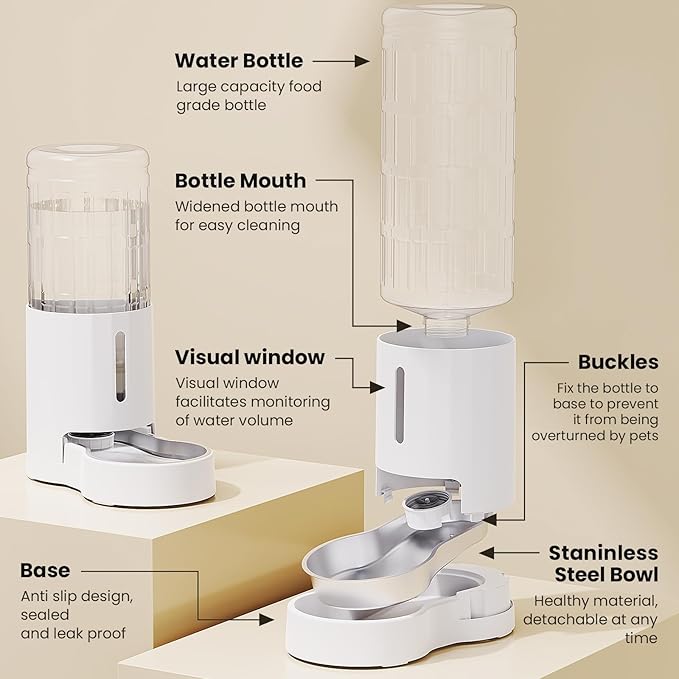- [Drinking Safe] We take care of pets' drinking water health. The water bowl is fully attached to the base and made of food grade 304 stainless steel. Other components also use pet friendly materials.