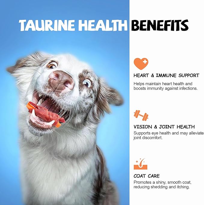 - ENRICHED WITH TAURINE : taurine is essential for your dog's heart and cardiovascular system. Added in small amounts to dog treats which helps with heart and cardiovascular health. It also contributes keep dogsβ vision sharp. You were all over his/her bright, sparkling eyes
