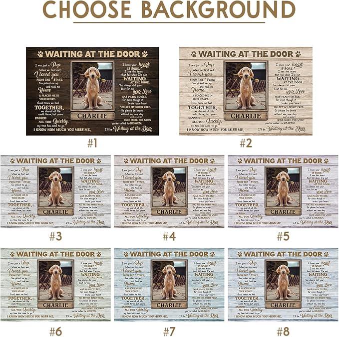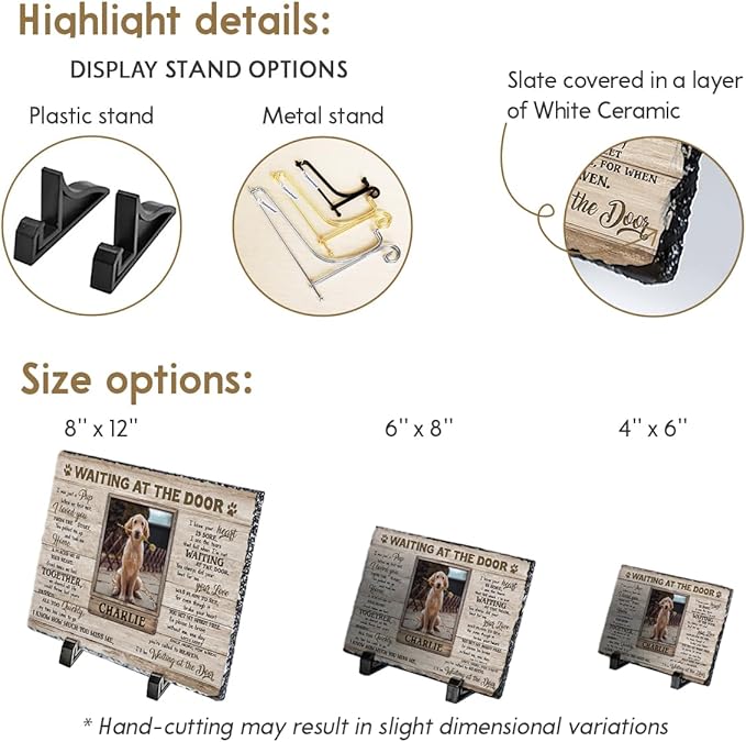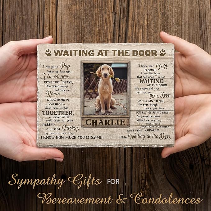 Personalized Dog Memorial Stone Plaque - Waiting at The Door, Sympathy Gift for Pet Lovers, Changing Colorful Background to Paint Loving Memory, Ideal Cat Mom Gifts