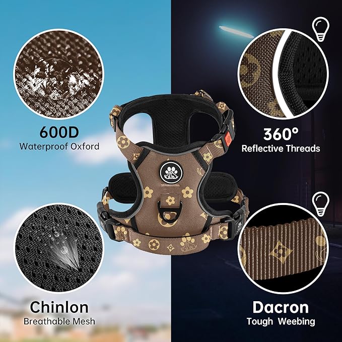- 【EASY ADJUSTMENT】This no choke dog harness design with 4 fully adjustable straps (2 shoulder and 2 chest straps) which can be adjusted to the most fitting size, prevents the dog from breaking free while maintaining maximum comfort