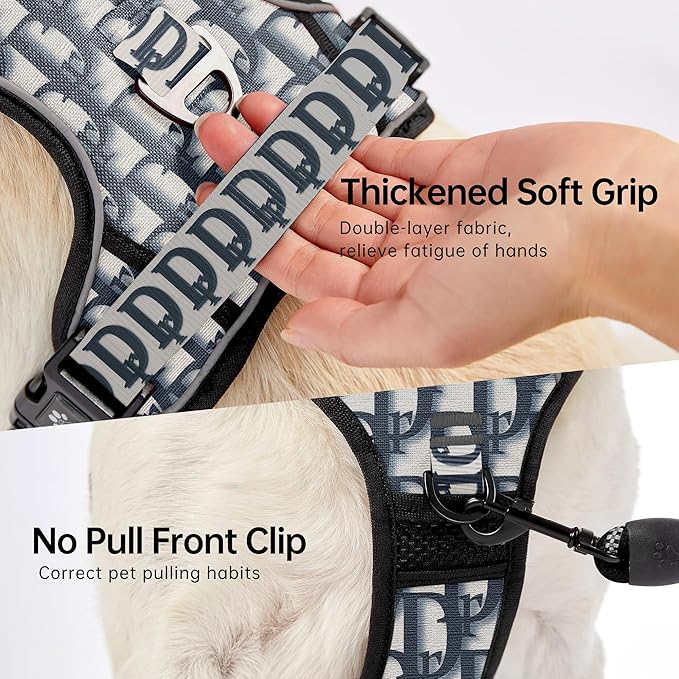 - 【EASY ADJUSTMENT】This no choke dog harness design with 4 fully adjustable straps (2 shoulder and 2 chest straps) which can be adjusted to the most fitting size, prevents the dog from breaking free while maintaining maximum comfort