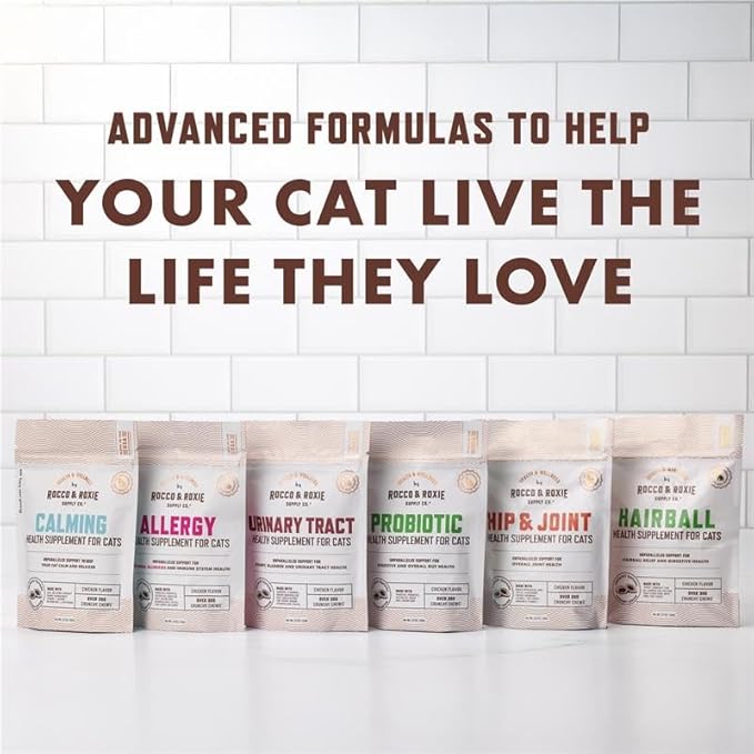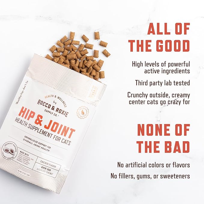 Rocco & Roxie Senior Cat Hip & Joint Supplements - Chicken Flavored Glucosamine Joint Supplement for Cats, Cat Arthritis Pain Relief, with Green Lipped Mussel, Made in USA, Over 300 Crunchy Chews