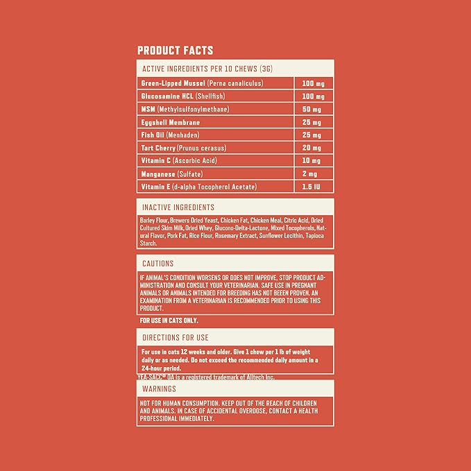 - Enhanced Mobility: Support your cat's active lifestyle with our powerful cat joint supplement; contains premium glucosamine for cats and antinol for improved flexibility; helps maintain healthy movement in cats of all ages
