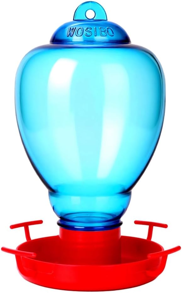 - LARGE CAPACITY AND HIGH QUALITY: The blue beautiful water feeder features 32 Ounce water/nectar glass container, with durable plastic base, metal hook and ant moat.