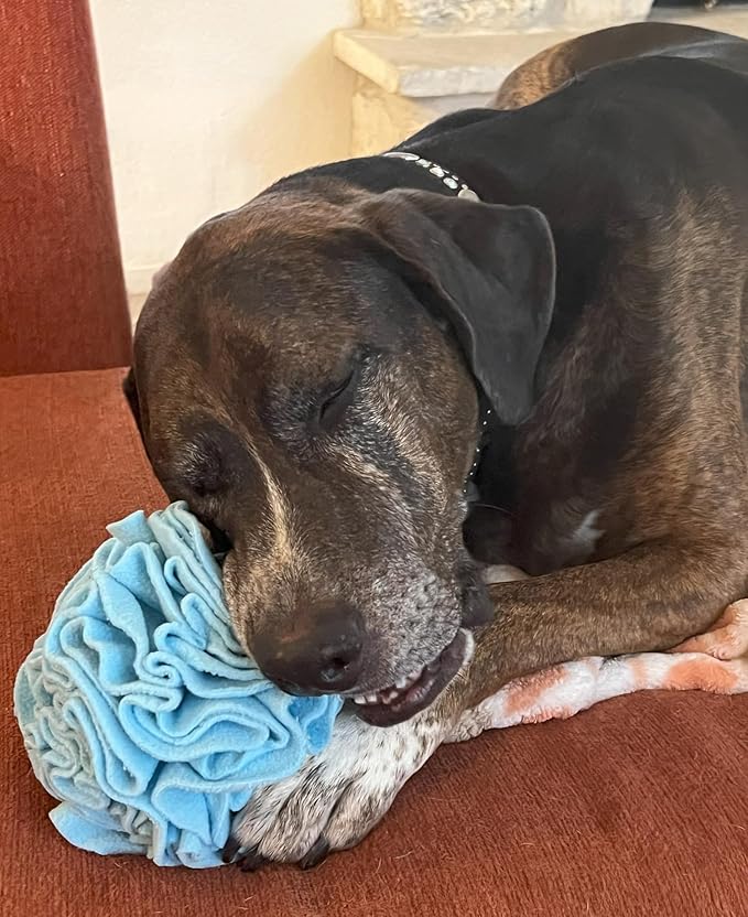 - It’s a snuffle mat reimagined for medium to large mouths. This hide-and-seek toy is a great way to keep your dog engaged and occupied while also helping them develop their sensory skills looking for hidden treats as a reward during playtime! Folds of soft polyester fleece fabric hold small treats or even kibble for way-sensitive noses to sniff out and discover, hitting puppy paw-fection: play, forage, and reward.