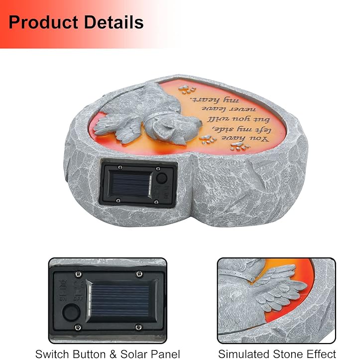 - Solar Powered Statue: No wiring is required for the solar powered outdoor lights. The heart attached with 12 warm white LED lights is solar-powered and glows warmly at night if left in the sun to charge during the day.