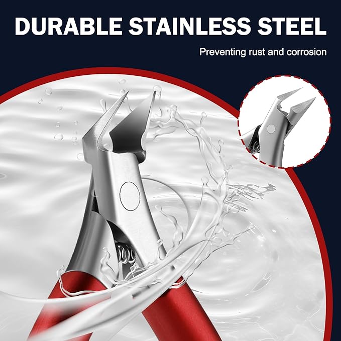 FVION Toenail Clippers for Ingrown Toenail, Straight Nail Clippers for Ingrown Toenails, Professional Ingrown Toenail Treatment for Adults, Seniors, Men and Women (Red)
