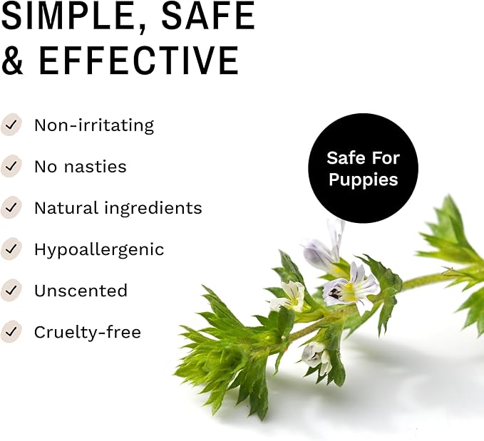 - SAFE AND NATURAL: Eye Envy products are made from non-irritating and natural ingredients. Ideal for allergy-prone dogs and dogs with sensitivities. Hypo-allergenic and fragrance free. Does not contain; parabens, peroxide, bleach, steroids, or antibiotics. Made in the USA with human grade ingredients since 2001. Cruelty-free. Safe for puppies from the age of 6 weeks.