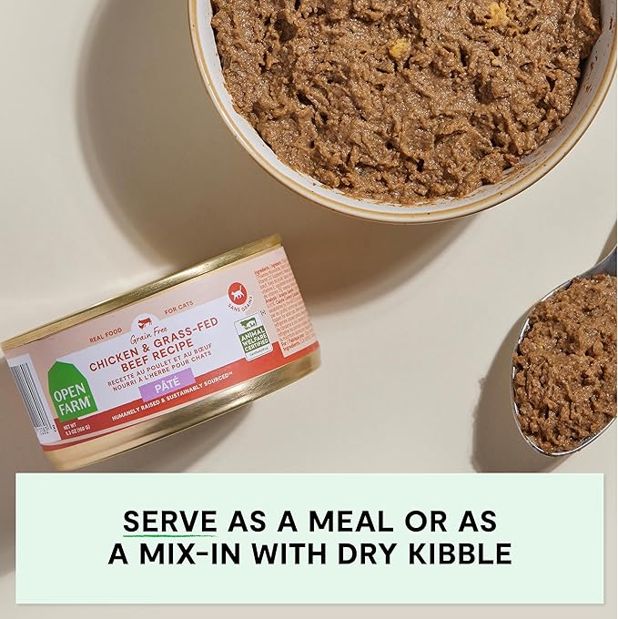 Open Farm Canned Cat Food, Paté for Complete & Balanced Nutrition, Grain-Free and Legume-Free Wet Cat Food, Chicken & Beef Recipe, 2.8oz Cans (Case of 18)