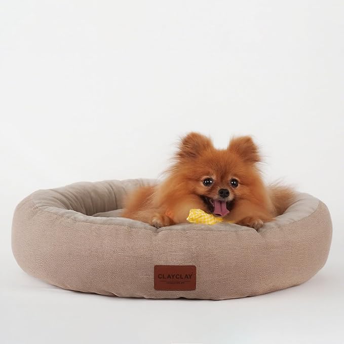 Cozy Round Cat Bed – Soft, Comfortable Cushion for Cats & Kittens – Non-Slip, Machine Washable, Plush Sleep Bed for Cats, Ideal for Resting & Napping (Linen & Medium)
