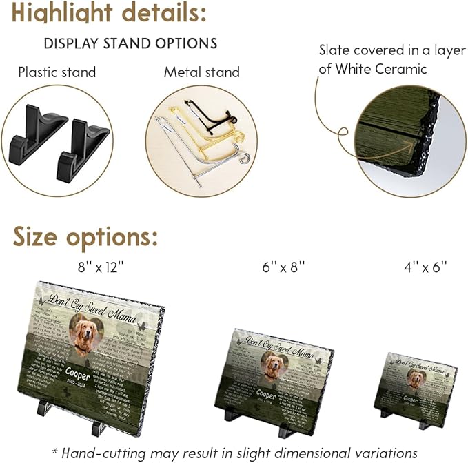 Custom Memorial Stone Gifts - 'Don't Cry Sweet Mama' - Diverse Background Palette, Sympathy Gift for Women and Mom Losing Beloved Pet - Caring Gesture for Dog & Cat Lovers