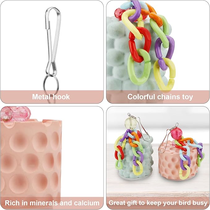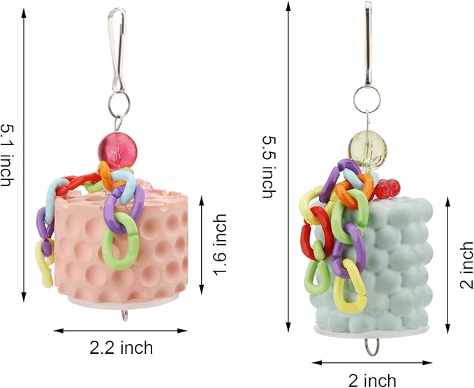 - Fun bird toys have bright colors that will attract the attention of feathered friends when you place the toy inside the bird cage. Uneven surface is designed for better trimming and cleaning of the bird's beak to keep the beak healthy