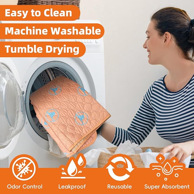 - Easy-Clean Reusable Design: Wipe or rinse away liquid messes effortlessly. The waterproof layer enhances protection ideal with disposable pads to control odors. Machine-washable and air-dry friendly for endless reuse. Simplify daily care and save costs