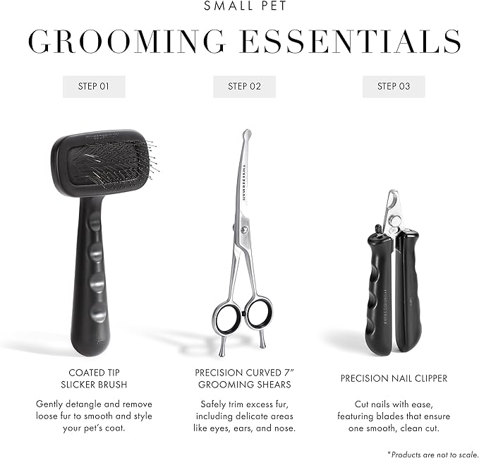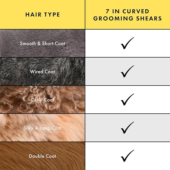 - These curved scissors for cat and dog grooming feature rounded safety tips to prevent nicking the skin, eyes, nose, and ears. Lightweight design provides comfort and prevents hand fatigue while trimming. Curved blade guides shape for cutting. Ideal for at-home grooming or beginner professional groomers.