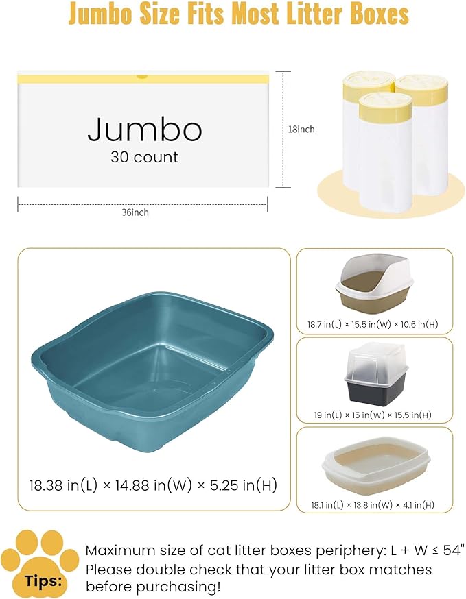 - Jubo Liners: Recognizing the critical role pets play in people's families, we are provide jumbo bags(36 inch*18 inch), fits most litter boxes
