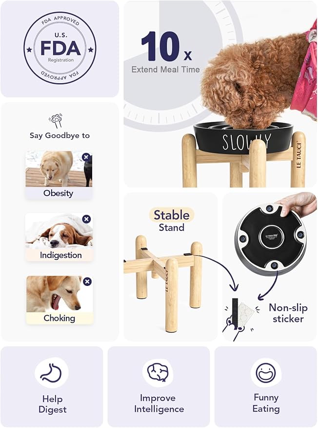 - Slow Down Eating, Bring Dog A Healthy Diet - Fast-eating dogs experience bloat, regurgitation, and obesity easily. Our slow feeder dog bowl design with the ridges and maze pattern helps your dog to eat slower than 24 times. Your dog could change his overeating behavior through a challenge and fun mealtime.