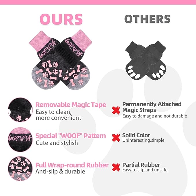- DOUBLE SIDED NON-SLIP: Each side of the sock has the grip, which provides additional traction when your dog walks on a smooth floor. Even if the socks are twisted, they can still work. In addition, the design of the double-sided grip ensures a longer lifespan of the socks. When the grip on one side is worn and has no anti slip effect, it can cause the dog to wear on the other side, exerting a new anti slip effect.