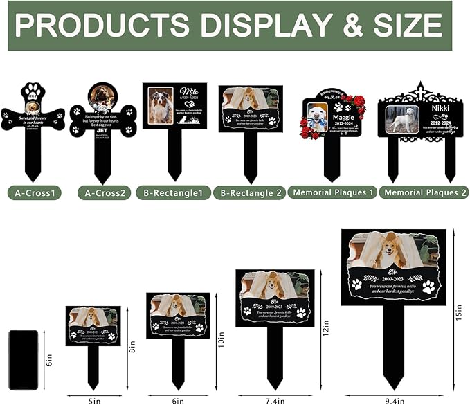 - MULTIPLE USE SCENARIOS:Pet grave stakes are versatile and can be placed in gardens, courtyards, and other outdoor spaces.Pet grave markers for pet cemetery and Simply insert it into the ground to mark the final resting place of your beloved dog