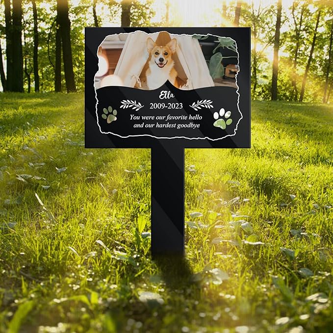 - DURABLE & WEATHERPROOF:This pet grave markers is designed for outdoor dog memorial and is made of acrylic material. Compared to metal gravestones, these dog gravestones will not rust and resist weathering, making them durable and long-lasting pet burial markers. We make each sign transparent, so if your pet's resting place is chosen in an environment where he likes to play, this pet tombstone can better blend into the environment