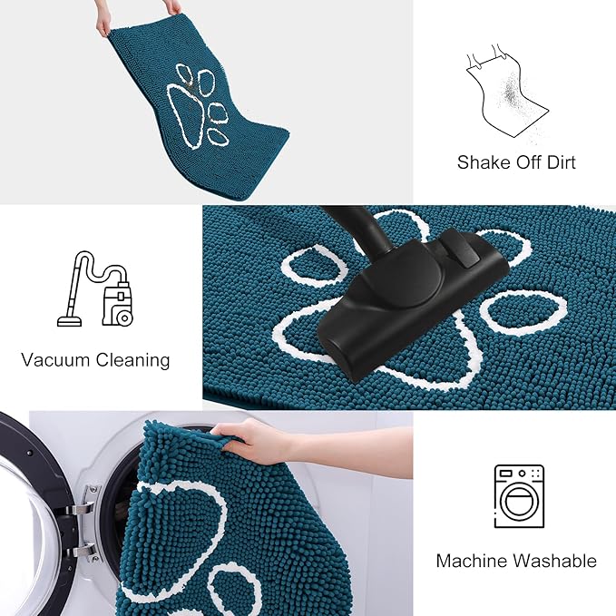 Smiry Dog Door Mat for Muddy Paws, Absorbent Dirt Trapper Non Slip Quick Dry Washable Chenille Mat for Mud Dogs, Entry Rug for Indoor and Outdoor (70x24 Inches, Atlantic Blue)