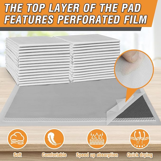 - Super Absorbent & Quick Drying: Our XL charcoal puppy pee pads use high-quality materials to make our thickened extra large dog pads much more absorbent than most wee wee pee pads for dogs on the market. The pet training pads use new premium material perforated film as the top layer of the dog potty pads which can speed up the liquid to pass through the surface than common non-woven fabric and keep the surface quick-drying, comfortable, with no puddling, and no tracking.