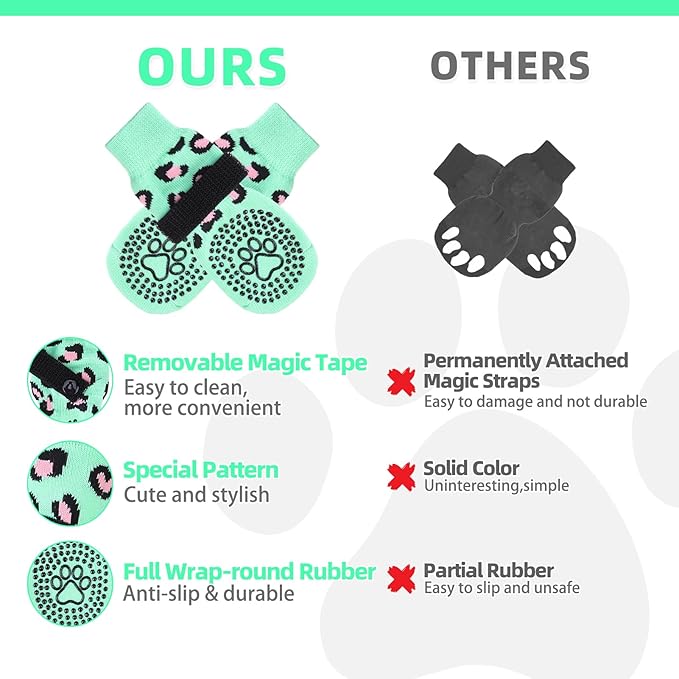 - DOUBLE SIDED NON-SLIP: Each side of the sock has the grip, which provides additional traction when your dog walks on a smooth floor. Even if the socks are twisted, they can still work. In addition, the design of the double-sided grip ensures a longer lifespan of the socks. When the grip on one side is worn and has no anti slip effect, it can cause the dog to wear on the other side, exerting a new anti slip effect.