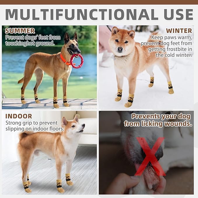 - MULTIFUNCTIONAL: Suitable for small medium large dogs, prevents your dog from licking wounds, from getting burned on the hot pavement in summer, and from getting frostbite in the cold winter. More comfortable than boots, shoes, or paw pads. In addition, it prevents naughty dogs from scratching the sofa and floor. A Practical dog sock Gift!