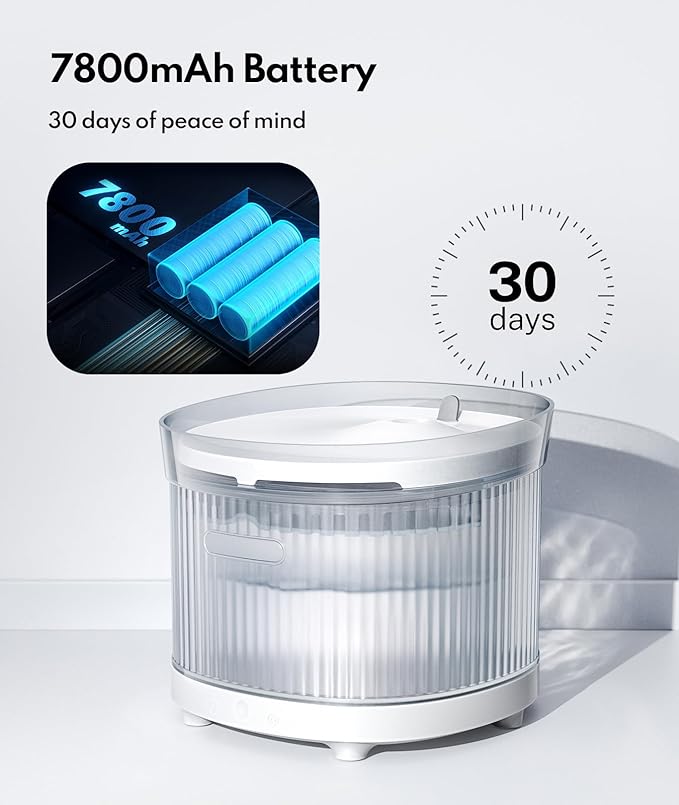 - 30 Days on One Charge: 7800mAh battery (50% larger than most) powers up to a month, ideal for busy pet parents or short trips, ensuring constant fresh water