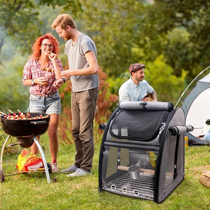 - Accessory Upgrade: Prepare all the accessories for traveling. The bird carrier bag comes with a perch(with fixed screws), feeding cup, bottom plate(easy to clean), and stainless steel mesh. Put on your backpack and you can go traveling with your pet bird