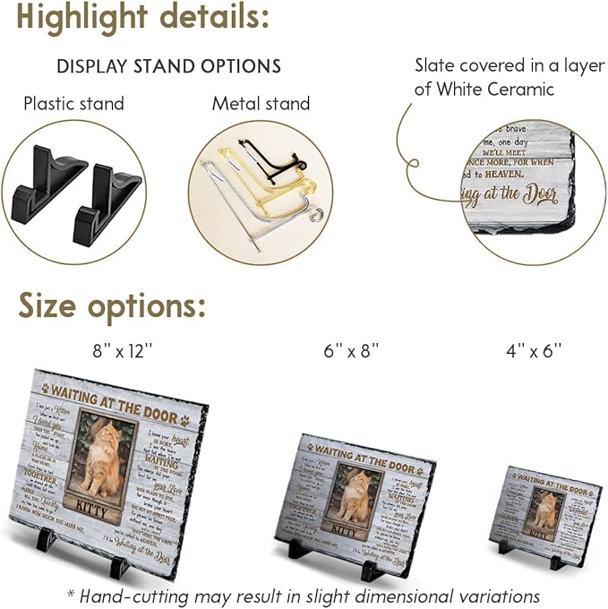 - Size and Stand: Available in three sizes to suit your preference, this stone plaque includes a 2-standing base. Whether you plan to place it inside your dog house outdoors or among your garden decor, it will stand out.