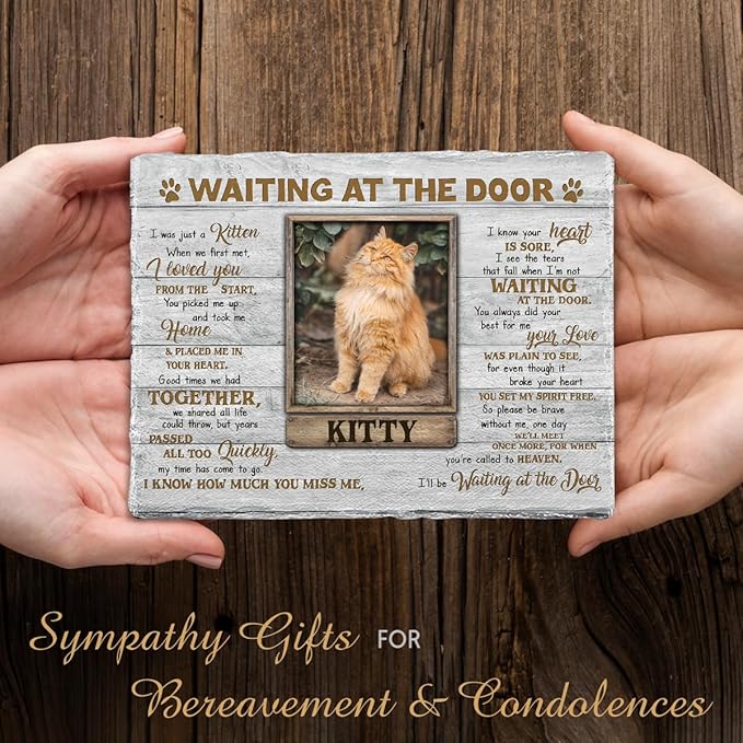Personalized Cat Memorial Stone, Headstones Gift for Cat Lovers, Loss of Sympathy Gifts with Customizable Photo Prints, Name, Years, Background Color