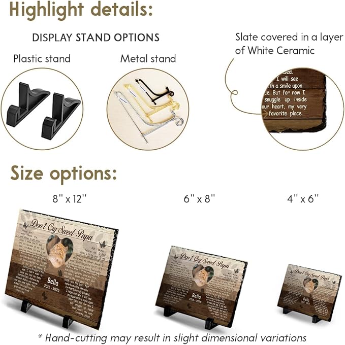 - Personalized Touch: This memorial stone offers a unique way to commemorate your beloved cat or dog. With options for custom names, years, photos, and a meaningful quote, it's one of the best bereavement gifts you can give to yourself or a fellow pet lover.