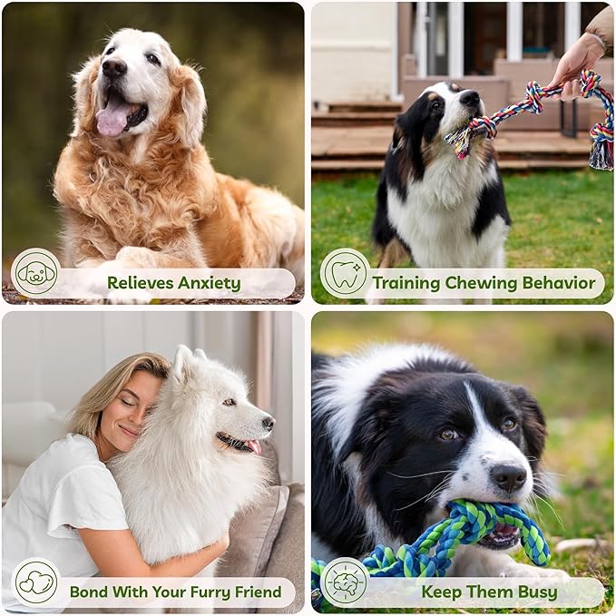 - 【Durable Dog Toys For Large Dogs】Bright colors rope, instantly attract the eyes of the dog, inspire their play nature, dog toys to keep them busy, suitable for indoor and outdoor play. With this dog ropes for aggressive chewers, great protection for your home (shoes, sofa, pillows,ect) from chewing.